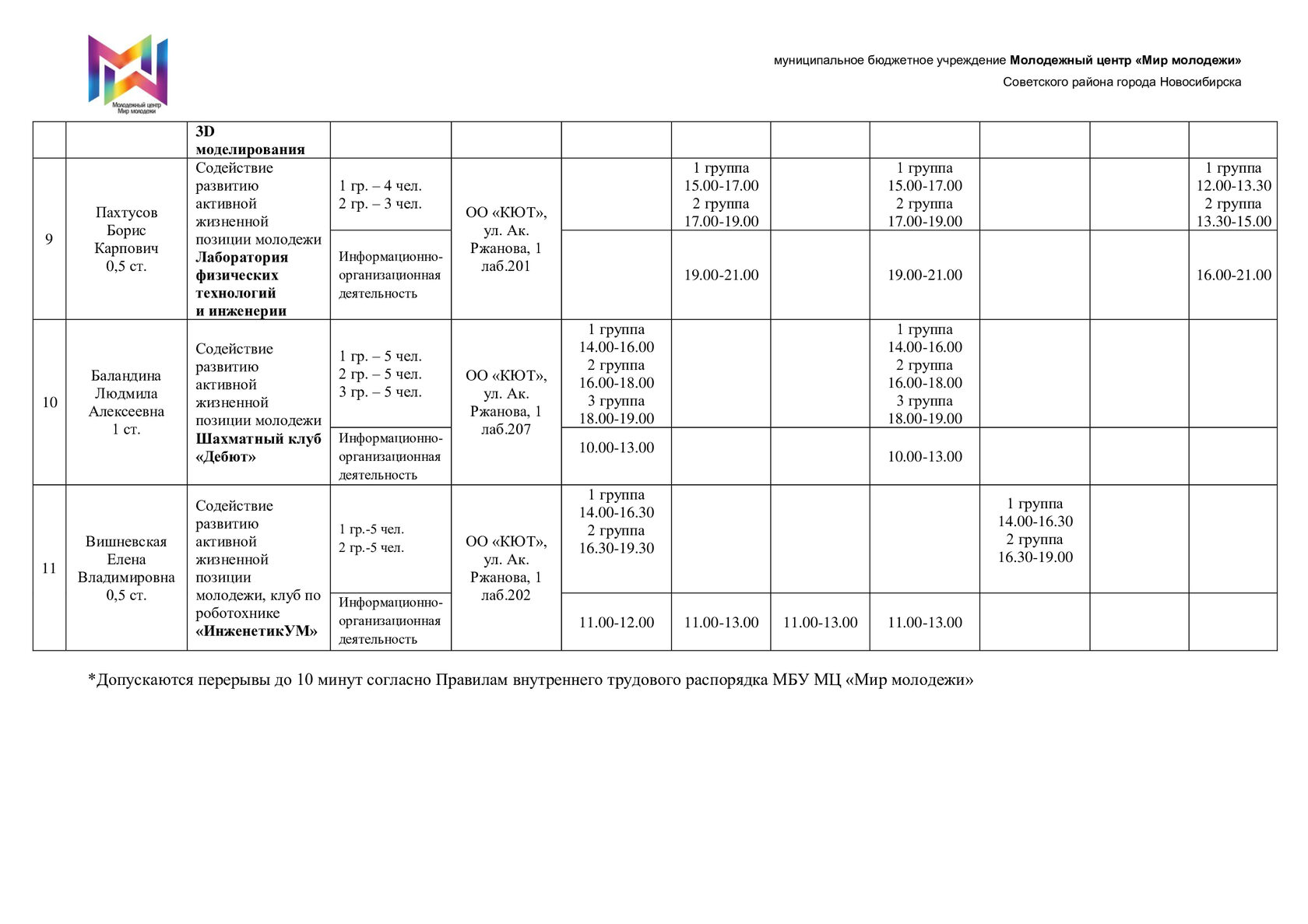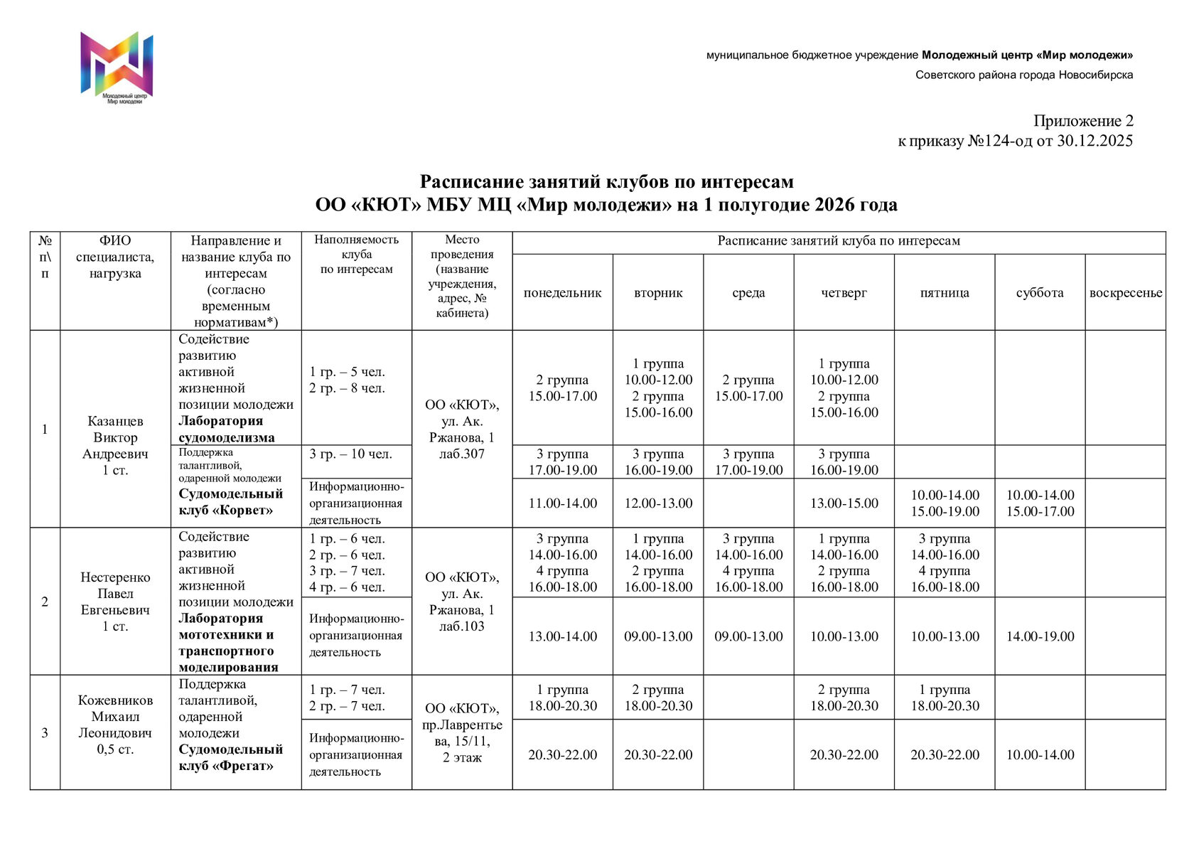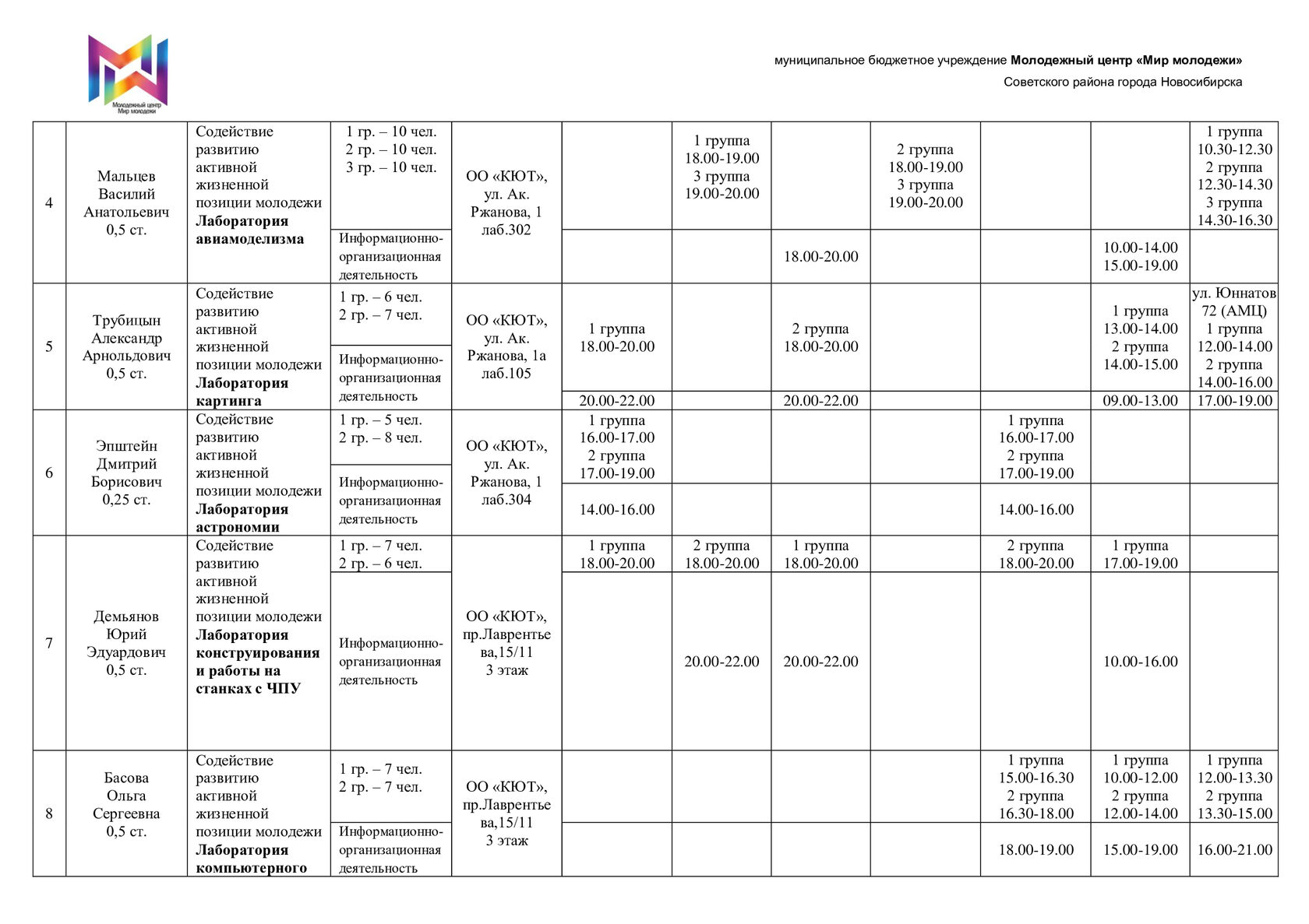 Расписание отдела "КЮТ"