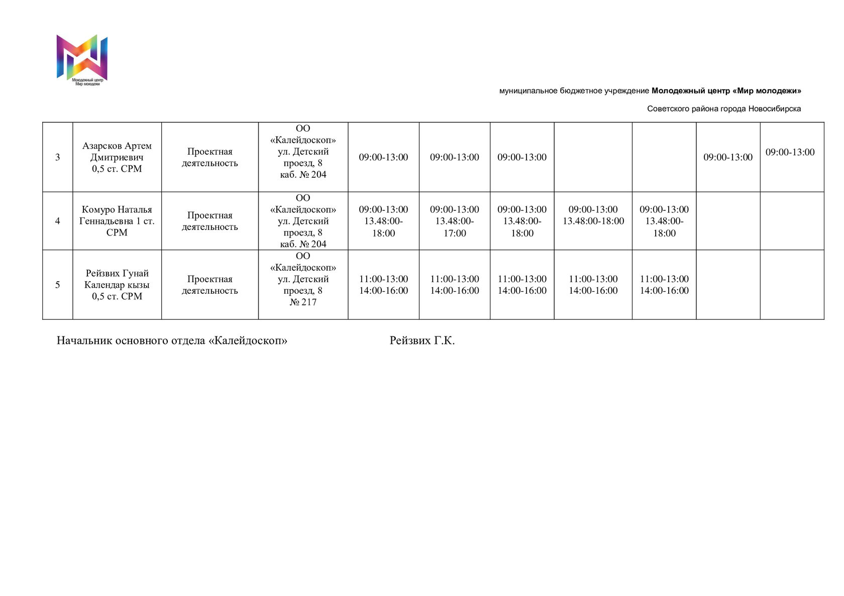 начальник ОО "Калайдоскоп"